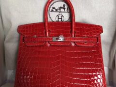 エルメスバーキンバッグエルメスバーキン25CMCK95フェラーリレッドシャイニークロコダイルレザープラチナバッグシルバーバックル