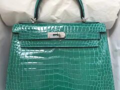スポットエルメスエルメス6QエメラルドグリーンブライトクロコダイルレザーミニケリーバッグMinikelly22CMシルバーバックル