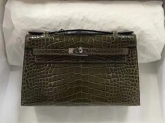 スポットエルメスエルメス6QエメラルドグリーンブライトクロコダイルレザーミニケリーバッグMinikelly22CMシルバーバックル