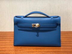 エルメスミニケリークラッチエルメスオリジナルパームレザーミニケリーバッグ7Wイズミールブルーゴールドバックル