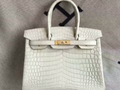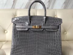 エルメスバーキンバッグエルメスシャイニーナイルクロコダイルレザープラチナバッグBirkin25CM8Uグレイシャーグレーゴールドバックル