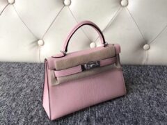 スポットエルメスMinikelly2世代エルメス3Q新しいピンクの輸入ヤギ革ミニケリーバッグ2世代シルバーバックル