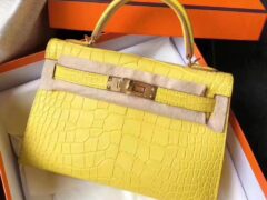 カスタマイズされたエルメスミニケリーバッグ2世代エルメスミニケリー-2M9カレンデュライエローマットクロコダイルレザーゴールドバックル