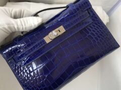 エルメスミニケリーハンドバッグエルメスシャイニークロコダイルレザーミニケリーバッグ7Tエレクトロオプティックブルーシルバーバックル