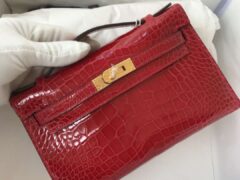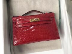 エルメスMinikelly22CMエルメスCK95フェラーリレッドシャイニークロコダイルレザーミニケリーバッグクラッチゴールドバックル