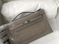 エルメスミニケリーポシェット22CMエルメスCK81ターコイズグレーシャイニークロコダイルレザーミニケリーバッグシルバーバックル