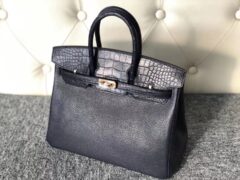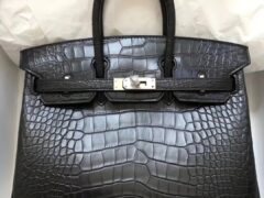 スポットエルメスBirkin25CMエルメスck89ブラックマットクロコダイルレザープラチナバッグシルバーバックル