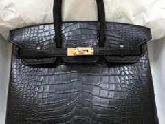 スポットエルメスバーキンバッグエルメスマットクロコダイルレザープラチナバッグBirkin25CMck89ブラックゴールドバックル