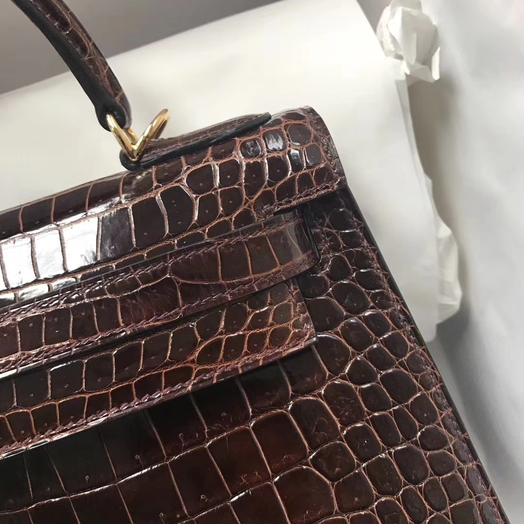 ブランド:エルメス;スタイル:アウターシーム付きケリーバッグ;素材:オリジナルクイーンの光沢のあるオーストラリアンガルフクロコダイルレザー;カラー:ハニーブラウン;サイズ:28cm;ハードウェア:ゴールドバックル;付属品:ダストバッグ、ロック;用途:ハンドバッグ