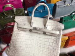スポットエルメスBirkin25CMエルメス輸入ヒマラヤクロコダイルレザープラチナバッグシルバーバックル
