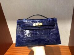 スポットエルメスMinikelly22CMエルメスM3インクブルー光沢クロコダイルレザーミニケリーバッグハンドバッグゴールドバックル