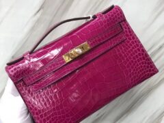 スポットエルメスエルメスCK95フェラーリレッドシャイニークロコダイルレザーミニケリーバッグMinikelly22CMゴールドバックル