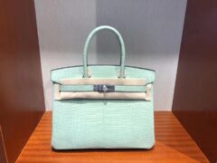 エルメスバーキンバッグエルメスバーキン25CM6Uミントグリーンマットクロコダイルレザープラチナバッグシルバーバックル