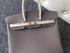 エルメスバーキン25CMエルメスCK18エレファントグレー/CK10ミルクセーキホワイトエプソムレザーカラーブロックプラチナバックル