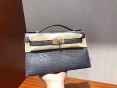 スポットエルメスミニケリーバッグハンドバッグエルメスMinikelly22CMCK19ムースグレーフォグクロコダイルレザーゴールドバックル