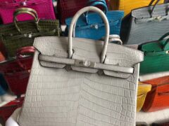 希少エルメスバーキンパールグレーアリゲータークロコダイル25CMシルバー金具