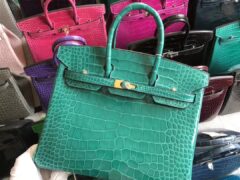 エルメス バーキン25 ヴェールジェイド クロコダイル アリゲーターシャイニー ゴールド金具 バーキン25 緑 ハンドバッグ グリンー系