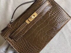 カスタマイズされたエルメスミニケリークラッチエルメスシャイニークロコダイルレザーミニケリーバッグ22CM4Bビスケットカラーゴールドバックル