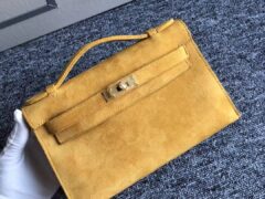 スポットエルメスMinikelly22CMエルメス9Dアンバーイエローゴートレザースエードミニケリーバッグゴールドバックル