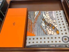 エルメス18秋冬新作シルクカシミヤスカーフスカーフ「ノーブルサドル」グレー140*140cm