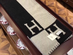オリジナルシングルクオリティエルメスエルメスHレターブランケットブラックカシミア素材140*160cm