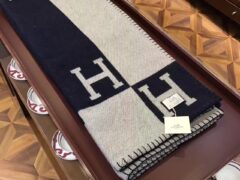 ワンピースエルメスエルメスオリジナルシングルネイビーブルーカシミアHレターブランケット140*160cm