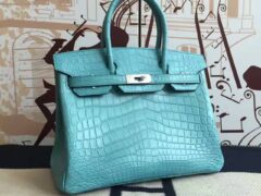 ラグジュアリーレディースバッグエルメスバーキン30プラチナバッグ3Zセントシルブルーマットツーポイントクロコダイルフィッシュスキン