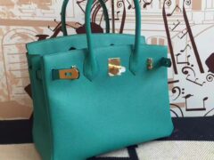 バーキン30CMエプソムオリジナルパームレザー7Fピーコックブルーブルーパオンゴールドバックルシルバーバックルスポット
