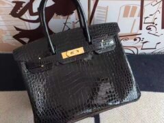 バーキン30cmポロサスクロコダイルシャイニーシャイニーアリゲーターゴールドバックルハンドメイドワックススレッド