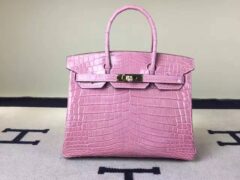 エルメスエルメス5ZインディアンピンクシャイニーツーポイントクロコダイルレザーBirkin30プラチナバッグ