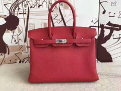 エルメスバーキンバッグQ5フラッグレッドオリジナルトップカーフスキンプラチナバッグ30cm