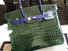 カスタマイズされたエルメスカラーブロックプラチナバッグエルメスバーキン30cmCK67エメラルド/7Tエレクトリックブルーシャイニークロコダイルレザーゴールドバックル