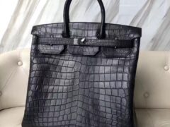 カスタマイズされたエルメスプラチナバッグエルメスHAC40CMCK89ブラックマットクロコダイルレザーシルバーバックル
