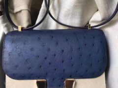 エルメスコンスタンスバッグエルメスコンスタンス23CM7LマルタブルーKKオーストリッチレザースチュワーデスバッグシルバーバックル