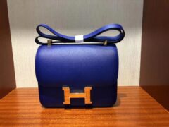 エルメスコンスタンスバッグエルメスコンスタンス24CM7Tエレクトリックブルーエプソムレザースチュワーデスバッグゴールドバックル