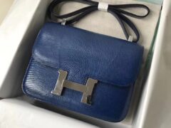 エルメスコンスタンスバッグエルメスコンスタンス23CM7Qギリシャブルー輸入トカゲスキンスチュワーデスバッグシルバーバックル