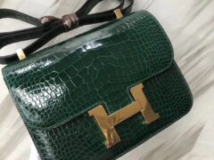 スポットエルメスコンスタンス24CMエルメス6Qエメラルドグリーン光沢のあるクロコダイルスキンスチュワーデスバッグゴールドバックル