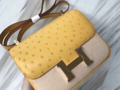 エルメスコンスタンスバッグエルメストップKKオーストリッチレザースチュワーデスバッグConstance23CM9Dアンバーゴールドバックル