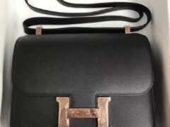エルメスバッグ価格エルメスCK89ブラックパームグレイン牛革スチュワーデスバッグConstance23CMローズゴールドバックル