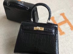 エルメスケリーレディースバッグエルメスCK89ブラックシャイニースクエアクロコダイルレザーケリーバッグ20cmゴールドバックル