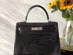 エルメスケリーレディースバッグエルメスシャイニークロコダイルスキンケリーバッグKelly28CMCK89ブラックシルバーバックル