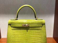 エルメスケリーバッグエルメス6Rキウイグリーンオリジナル光沢クロコダイルスキンケリーバッグKelly28CMゴールドバックル