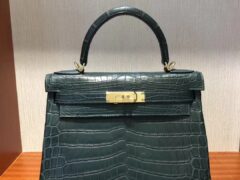 エルメスケリーレディースバッグエルメスオリジナルクロコダイルスキンケリーバッグKelly28CM1Tタイタングリーンゴールドバックル