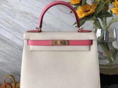 エルメスケリーバッグエルメスピュアホワイトロール9サンイエローエッジエプソムレザーケリーバッグ28CMゴールドバックル