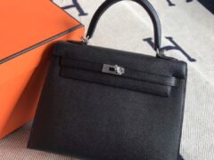 エルメスケリーレディースバッグエルメスブラックオリジナルエプソムレザーケリーバッグ25CMシルバーバックル