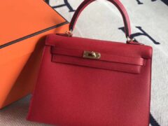 エルメスケリーレディースバッグエルメスQ5フラッグレッドオリジナルエプソムレザーケリーバッグ25CMゴールドバックル