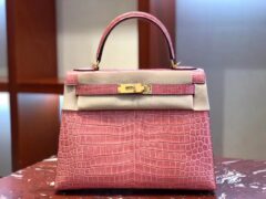 スポットエルメスケリーバッグエルメスピーチパウダーピカピカクロコダイルスキンケリーバッグKelly28CMゴールドバックル