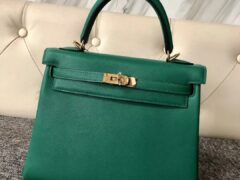 スポットエルメスケリーレディースバッグエルメスクランプグラスグリーン明るいクロコダイルスキンケリー28ケリーバッグシルバーバックル