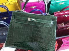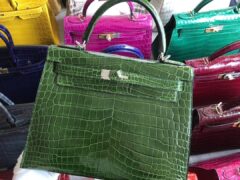スポットエルメスバッグ価格エルメス光沢のあるクロコダイルスキンKelly28CMCK67エメラルドシルバーバックル