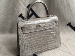 ハンドメイドエルメスケリーバッグC81ターコイズグレーブライトクロコダイルレザーケリー25cm